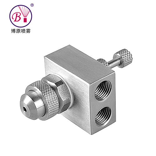 大流量型空氣霧化噴嘴因為當液體壓力有微小的變化時,液體的流量就會發生很大改變,博原認為應采用計量泵或其他計量設備控制液體的流量。